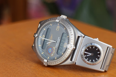 BREITLING dikenal sebagai produsen jam yang dekat dengan dunia aviasi. Banyak angkatan udara negara-negara di dunia yang mempercayakan jam untuk para pilot mereka pada BREITLING. Sala satunya adalah Uni Arab Emirates Air force yang membuat edisi special Aeropsace Navitimer Ref.80360. Jam ini diproduksi pada pertengahan tahun 90-an. Menggunakan material titanium dengan diameter casing 39mm. Original Bracelet untuk aerospace. Kondisi jam masih bagus dan dijual tanpa box dan paper.