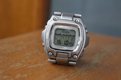CASIO mulai memproduksi model G SHOCK MRG-210-7 pada tahun 1997. MRG 210 ini dibuat seluruhnya dari bahan logam, suatu hal yang sangat jarang kita temui dalam produk G Shock lainnya. Desainnya juga dibuat berbeda dari model lainnya. Warna keseluruhan silver. Modul yang digunakan pada model ini adalah Modul 1673 yang pada akhir tahun 90-an termasuk sophisticated. One push-style metal buckle. Kondisi jam masih bagus. Dijual tanpa box dan paper.